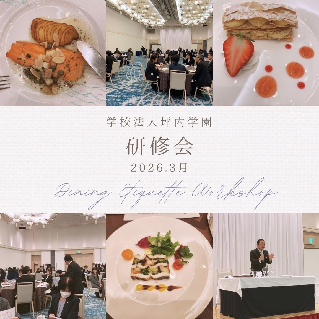 坪内学園では、教職員の資質向上の一環として、「テーブルマナー研修会」を実施いたしました。