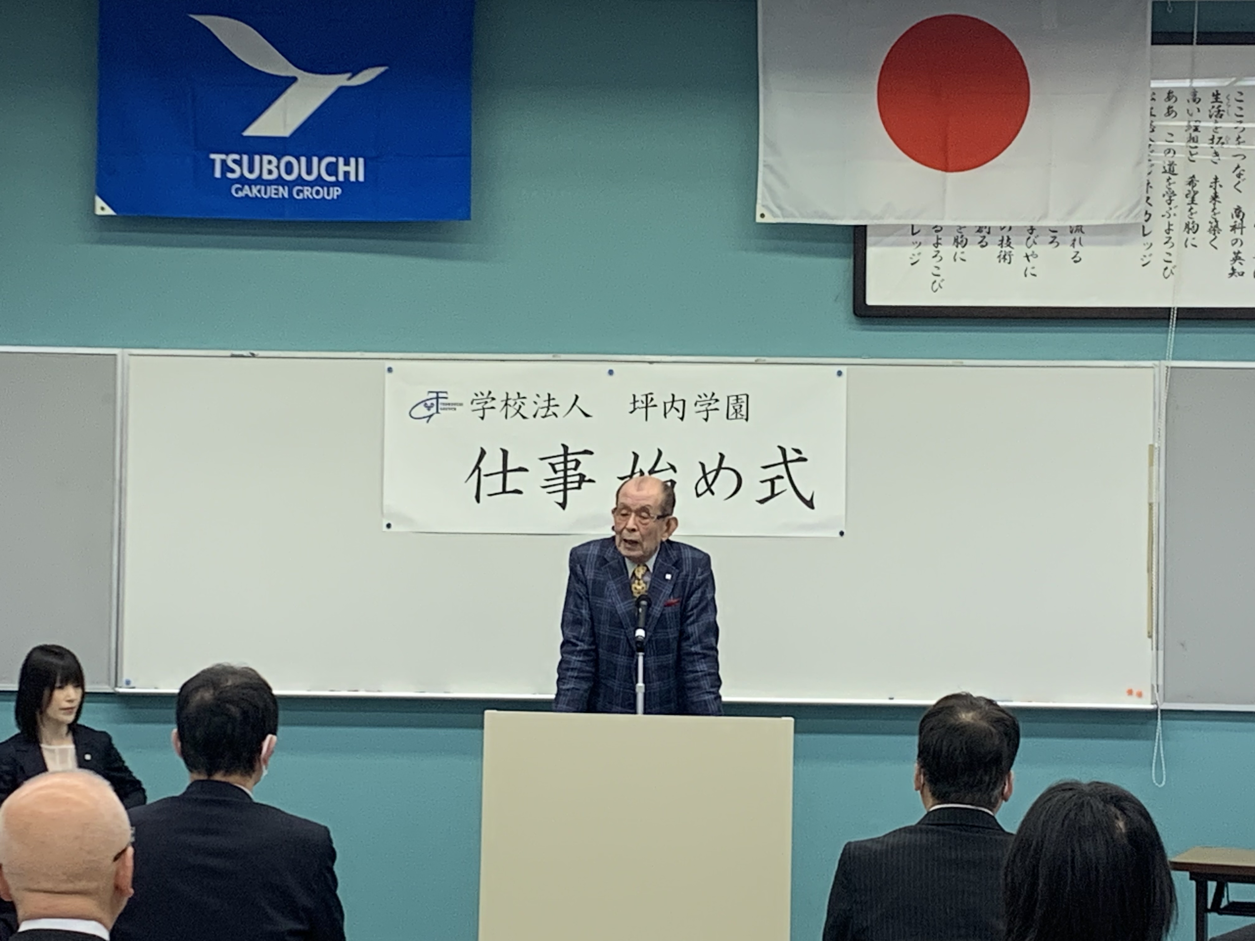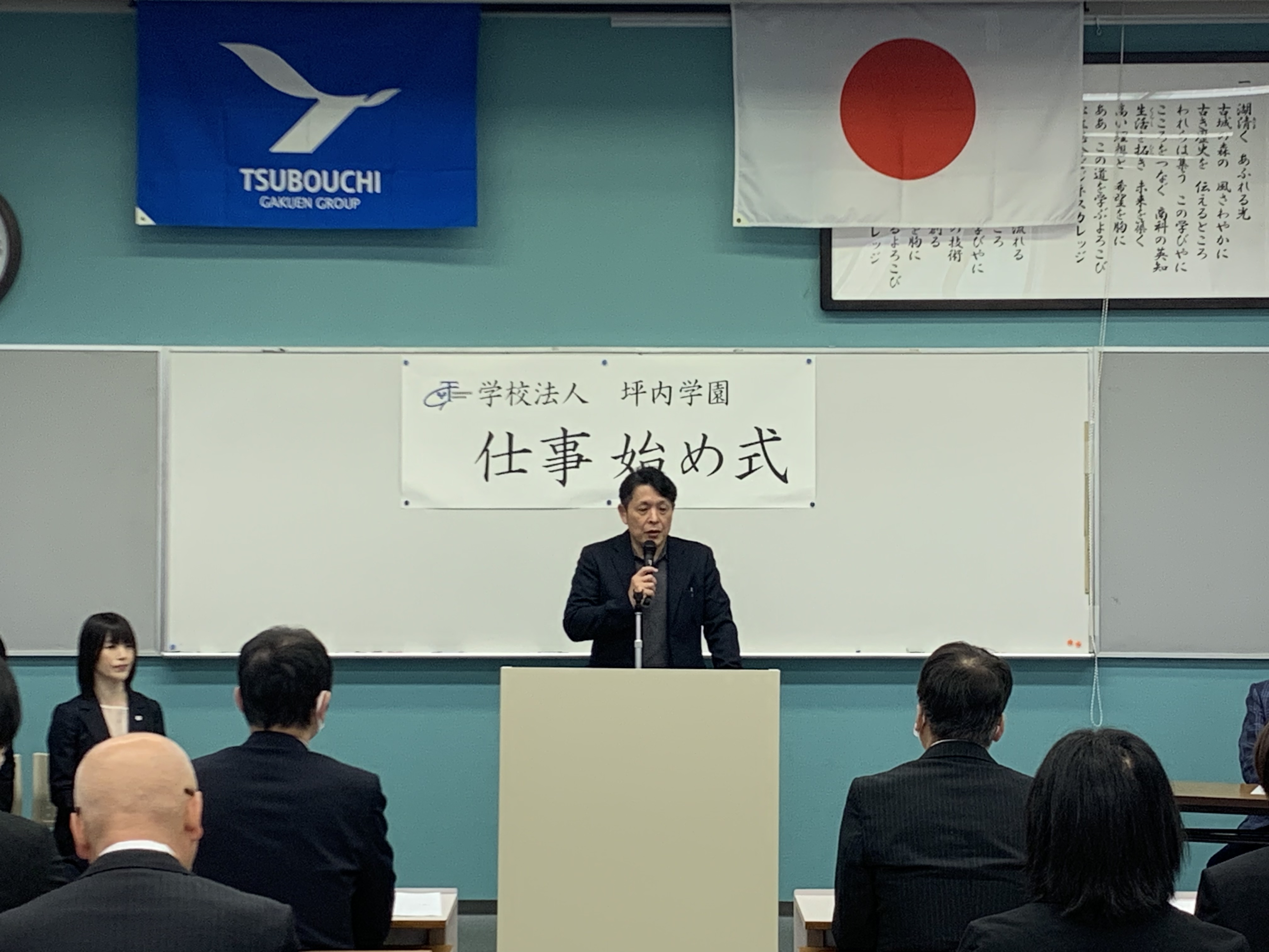 仕事始め式では、まず会長より新年のご挨拶があり、本学園が大切にしてきた理念や、これからの学園の歩みについてお話がありました。